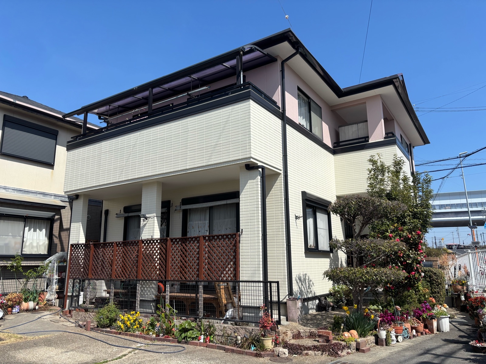 外壁と屋根の塗装工事を行い、全体的に明るく上品な印象へと生まれ変わりました。